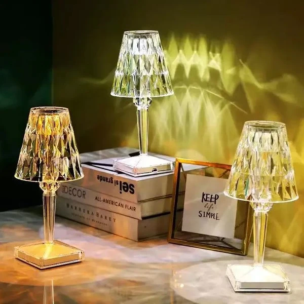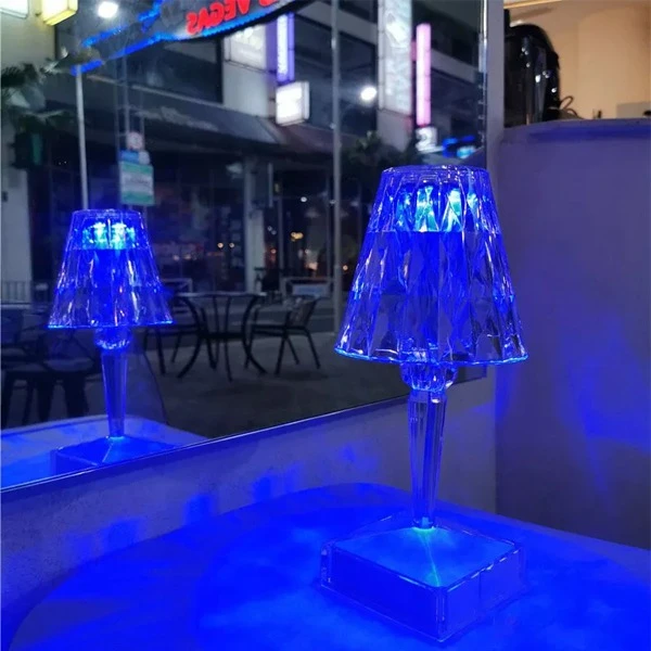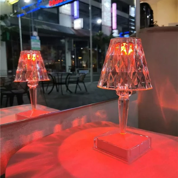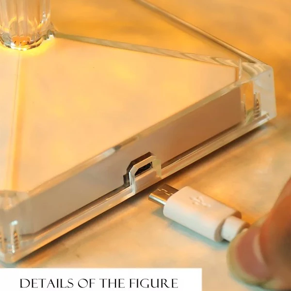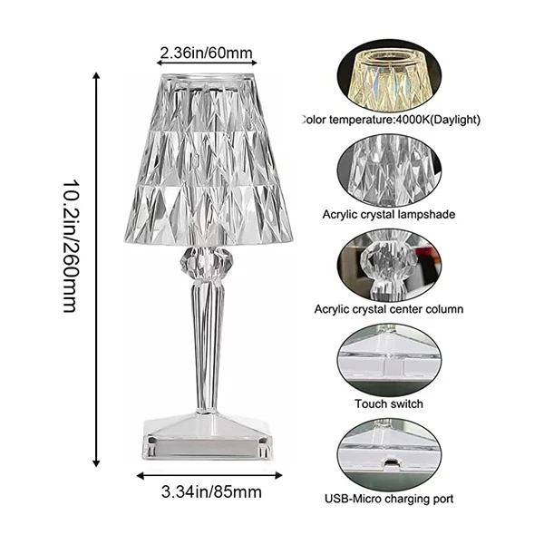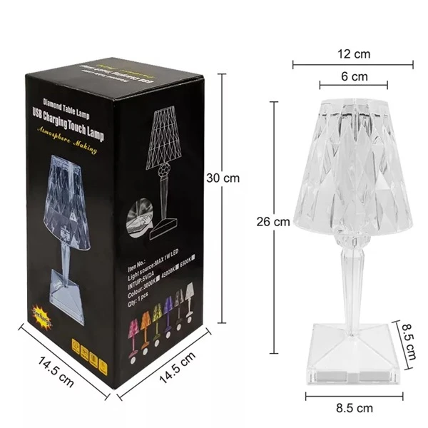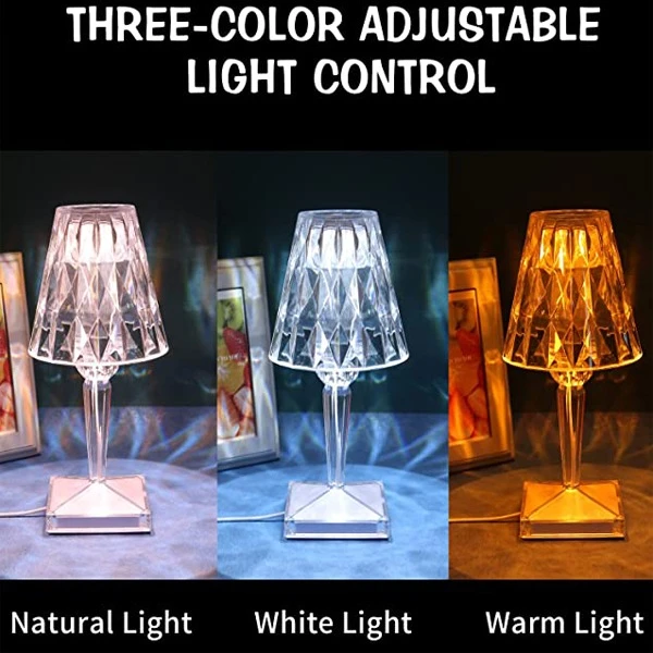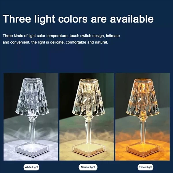 چراغ رومیزی کریستال LED از مواد کریستال اکریلیک با کیفیت بالا ساخته شده است، ظاهر آن به خوبی جلا داده شده است و سطح برش به شکل الماس آباژور است. چراغ تزئینی کریستالی برای اتاق نشیمن بر روی میز یا میز کنار تخت زیبا است و فضای رمانتیک برای کل اتاق شما فراهم میکند.این چراغ دارای یک دکمه لمسی برای روشن کردن میباشد و شما میتوانید با نگه داشتن این دکمه نور مد نظر خود که دارای 3نور اصلی میباشد (سفید، گرم، نور روز) را برای به دست آوردن روشنایی مورد نظر ارائه می دهد تنظیم کنید . لامپ های کریستالی بی سیم دارای پورت های شارژ USB میباشدکه مجهز به کابل شارژ USB هستندو همچنین چراغ رومیزی دارای باتری داخلی 1750 میلی متری است که قابل شارژ است. و بدون نیاز به وصل کردن کابل میتوانید از این لامپ استفاده کنید. پس از شارژ کامل، می توان از آن برای 10 ساعت استفاده کرد. طراحی هوشمند، بدون سیم، به شما امکان می دهد آن را به هر جایی ببرید.چراغ کریستالی قابل تنظیم است همانطور که می خواهید، چراغ اتاق خواب کریستالی از طرح آباژور استفاده می کند،این چراغ رومیزی کریستالی را به عنوان چراغ رومیزی تزئینی میتوانید نیز قرار دهیدو همچنین مناسب برای اتاق خواب، میز ناهارخوری، میز قهوه خانه، آشپزخانه و هر گوشه ای از خانه میتوان استفاده کرد.چراغ رومیزی کریستالی فضایی رمانتیک ایجاد می کند و دارای RGB میباشد و نورهای درخشان و رنگارنگ دارد وهمچنین به عنوان یک هدیه عالی برای دوستان و خانواده شما در روز شکرگزاری، روز ولنتاین، روز کریسمس و غیره میباشد.لامپ کریستال با RGB قرمز سبز آبی 3 نوع رنگ برای تبدیل 7 نوع رنگ (نور گرم + نور سفید گرم + نور سفید + نور زرد + نور آبی + نور قرمز و غیره) است