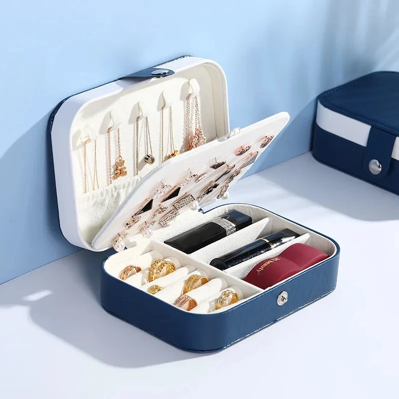 کیف چرمی جواهرات در سایز بزرگ مسافرتی با تنوع رنگ زیاد و زیبا آورده ایست برای شما مشتریان عزیز. در ابتدا، مهم ترین ویژگی این کیف جواهرات سایز مناسب 16×11.5×5 سانتیمتر و وزن بسیار پایین 215 گرمی این محصول هست که حمل و نقل جواهرات را بسیار آسان کرده و این امکان را برای شما فراهم میکند که بتوانید در هر مکانی جواهرات خودتان را همراه خود داشته باشید. سایز مسافرتی این محصولاین امکان را به شما میدهد که به راحتی جواهراتتان را در مسافرت ها به همراه خود داشته باشید. این محصول در رنگ های متنوع و بسیار زیبا صورتی، سبزآبی، سورمه ای، مشکی، سفید و آبی طراحی شده و میتواند یک کادو بسیار متفاوت برای عزیزانتان باشد.