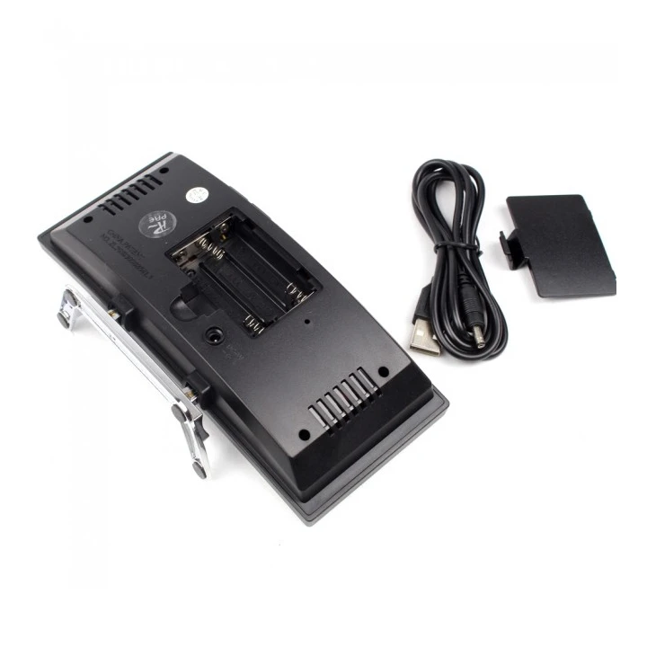 سایر توضیحات: نمایش زمان بصورت ۱۲ / ۲۴ ساعت نمایش دمای محیط زنگ بیداری و زنگ چرت تنظیم ۲ زمان برای آلارم بیداری و یاد آوری نمایش تاریخ دارای تنظیم خودکار نور صفحه در شب و روز استفاده از منبع انرژی برق توسط کابل USB ضد رطوبت ضد خش رنگ کیس مشکی در ۳ رنگ نور سفید ، سیز و قرمز