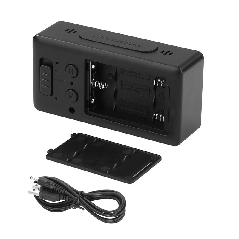 برای فعال شدن دکمه الارم 2 تا دکمه پشت ساعت رو همزمان فشار دهید ساعت رومیزی دیجیتال مدلStudent Clock یک ساعت بسیار جذاب و دوست داشتنی میباشد. هنگامی که جعبه این ساعت زیبا را باز میکنید با یک ساعت رومیزی دیجیتال با ابعاد 3×5×10 سانتی متر روبرو میشوید که در عین کوچکی زیبایی فراوانی دارد . بدنه این ساعت از جنس پلاستیک با کیفیتی مطلوب میباشد .بروی صفحه این ساعت یک محافظ چسبیانده شده که از خط و خش احتمالی بروی صفحه این ساعت جلوگیری کند. در داخل جعبه ساعت یک کابل قرار دارد که یک سر آن دارای سوکت USB و سر دیگر سوکت سوزنی میباشد .درب پشت ساعت را به آرامی باز میکنیم . ساعت با 3 عدد باتری با سایز AAA یا نیم قلمی کار میکند .هنگامی که باتری ها را داخل ساعت قرار میدهیم صفحه ساعت که با استفاده از Nano LED طراحی شده اند به زیبایی روشن شده و زیبایی این ساعت را به رخ میکشند . استفاده از نانو ال ای دی در این ساعت باعث شده که مصرف انرژی در آن بالا باشد. به همین منظور دو راه کار اندیشیده شده است . 1 . هنگام استفاده از باتری ساعت پس از 10 ثانیه به حالت slip mode یا حالت خواب میرود تا در مصرف باتری صرفه جویی شود . برای همین جهت نمایش ساعت باید دکمه بالای دستگاه را فشار دهید . 2 . در صورتی که شما تمایل دارید ساعت به صورت یکنواخت روشن بماند و به حالت اسلیپ مود نرود ساعت را با استفاده از کابل داخل جعبه به یک آداپتور 5 ولت استاندارد یا خروجی USB دستگاه های الکترونیکی مثل نمایشگر ها یا لپ تاپ و یا یک پاور بانک متصل کنید . ساعت به صورت کامل روشن مانده و خاموش نمیشود .از امکانات این ساعت میتوان به : 1. نمایش زمان 2.نمایش دمای محیط 3. زنگ بیداری و یاد آوری اشاره کرد .تنظیمات این ساعت بسیار ساده بوده و از طریق یک دکمه کشویی که در پشت محصول طراحی شده انجام میشود . دکمه را در حالت تنظیم ساعت یا تنظیم زمان بیداری قرار داده و با استفاده از دو دکمه فشاری که در پشت ساعت است ساعت و دقیقه را تنظیم کنید . پس از تنظیم کردن زمان دکمه را در حالت clock قرار دهید .این ساعت در دو رنگ مشکی و سفید در دسترس شماست .