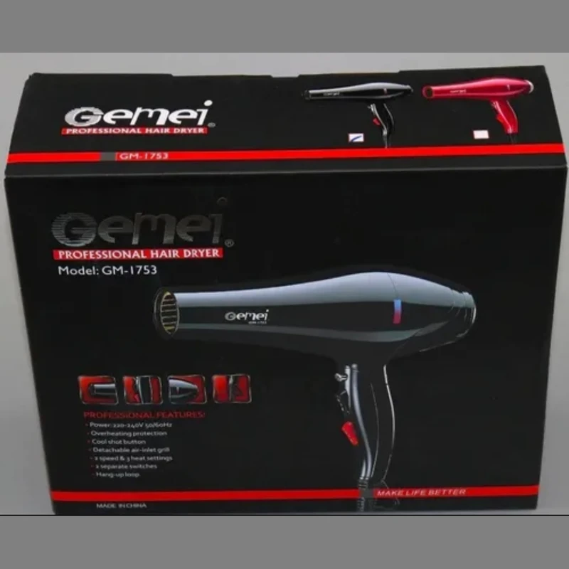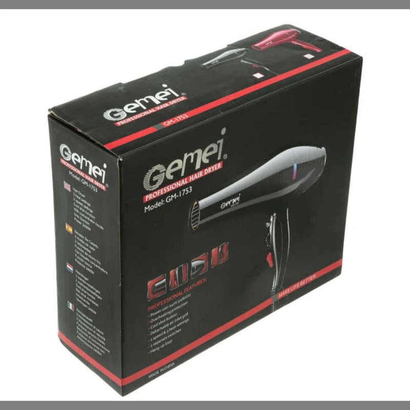 سشوار حرفه‌ای 2400 وات جیمی مدل GM-1753، موتور AC، وزن 1035 گرم، المنت تیتانیوم