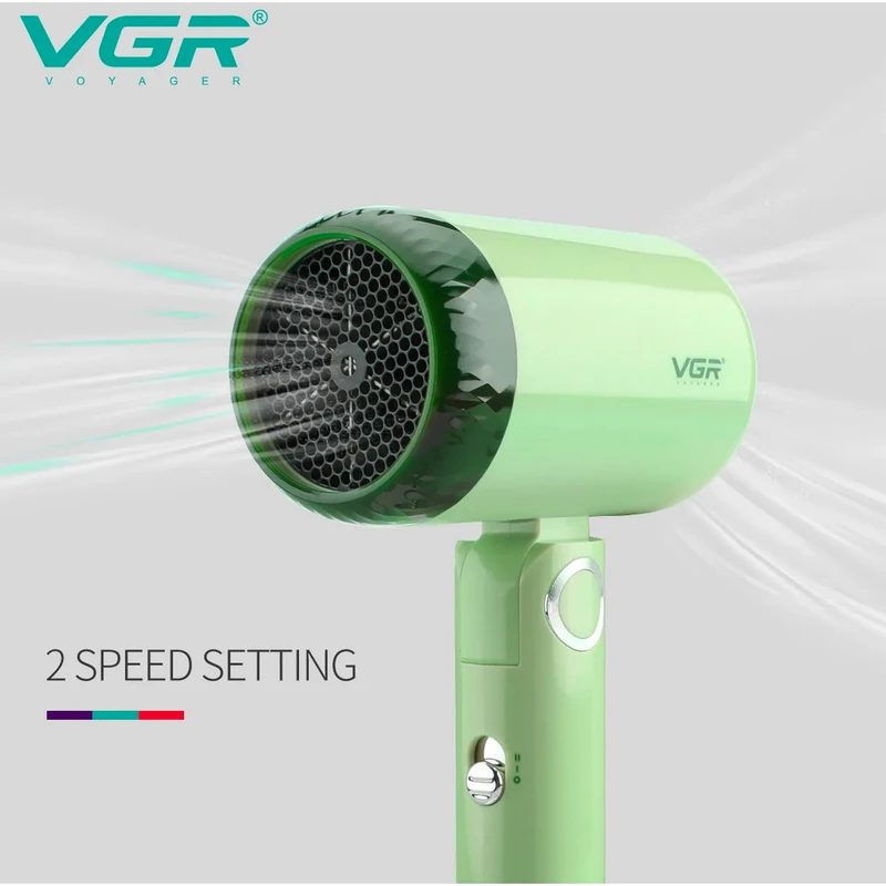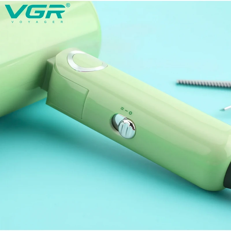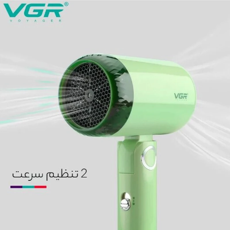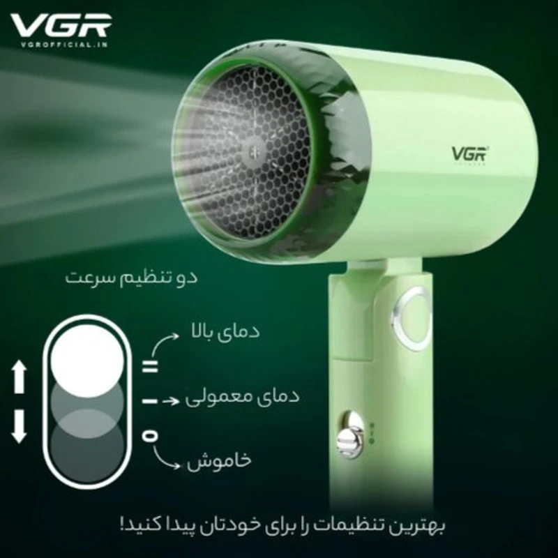 سشوار مسافرتی 1200 وات وی جی ار مدل 421، موتور DC، وزن 342 گرم، دارای سری متمرکزکننده باریک با ویژگی صافکنندگی، با قابلیت باد سرد