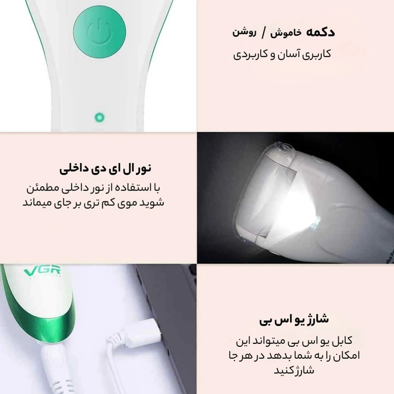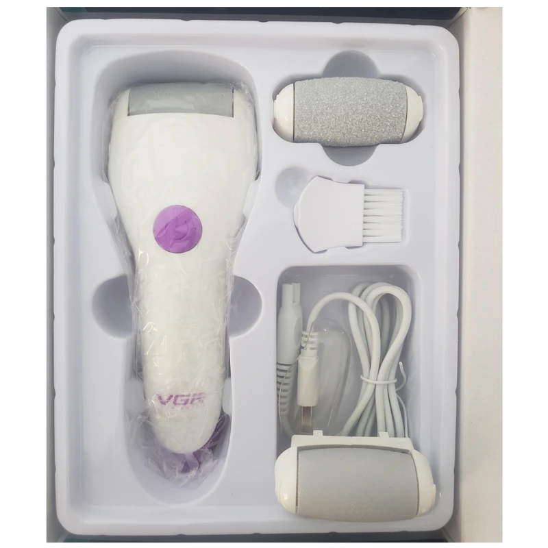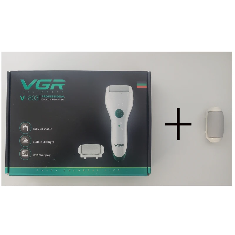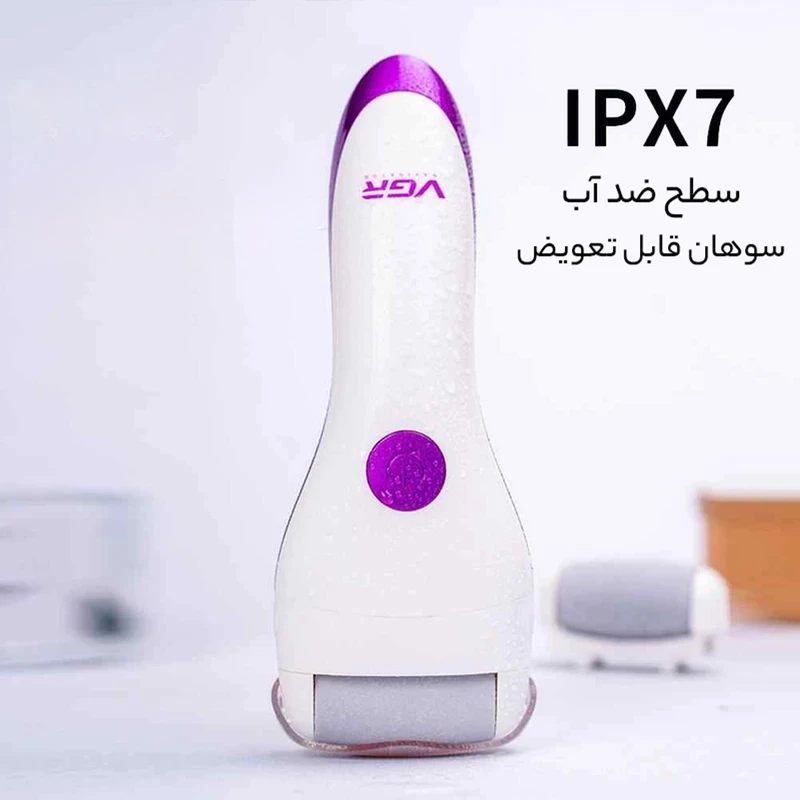 سنگ پا وی جی ار مدل V-803 کاملا ضدآب و قابل شستوشو میباشد این دستگاه شارژی و دارای نور LED است که باعث میشود سریع‌تر و بهتر از یک سنگ‌پا معمولی کار کنید . این دستگاه دارای دو نوع رول با درصد زبری‌های متفاوت است. این سنگ‌پا دارای رول چرخان ساینده برای جداکردن پوست‌های خشک و مرده از کف پاست.تمامی ما سنگ‌پا را می‌شناسیم و از آن استفاده کرده‌ایم. در کنار این شناخت و استفاده حتما درباره‌ی فواید استفاده از آن هم بسیار شنیده‌ایم. سنگ‌پا باعث می‌شود که پوست‌های مرده و یا ترک ترک شده از پا جدا شوند و پوست تازه‌ای که در لایه زیرین قرار دارد نمایان شود و این روند به نرمی و صافی پوست پا می‌انجامد.