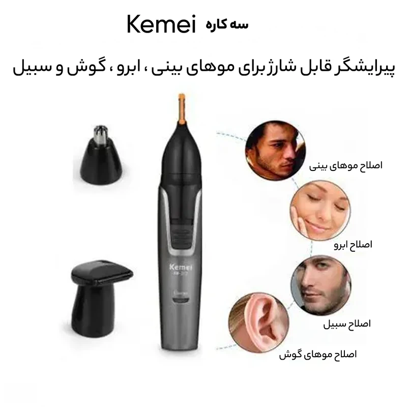 اگر به زیبایی و آراستگی اهمیت قائل هستیم باید در کنار استفاده از تمامی وسایل اصلاح سروصورت و بدن جایی برای یک موزن گوش و بینی و ابرو باکیفیت بازکنیم؛ بنابراین KM-312 از برند کیمی یکی از بهترین محصولات برای اصلاح گوش و بینی و ابرو است. این امکان را فراهم کرده که به‌راحتی از شر این موها که به‌شدت در معرض دید است خلاص شویم. این پیرایشگر دارای موتور پرقدرت و بادوامی است که همین امر موجب عمر بالای دستگاه می‌شود؛ و ازآنجایی‌که از قابلیت شارژ بادوام طولانی برخوردار است به‌راحتی می‌توان آن را شارژ کرد در مواقع لزوم به‌راحتی از آن استفاده کرد. همچنین از دیگر مشخصه‌های بارز آن داشتن تیغه‌های ضد آب است که بدون هیچ نگرانی می‌توان تیغه‌هایش را شست طوری که جهت استفاده مجدد ضدعفونی و تمیز باشد و طراحی این تیغه‌ها به صورتی است که تماس مستقیم باپوست ندارد لذا موجب آسیب و خراش در پوست‌های حساس نمی‌شود و ازآنجایی‌که دارای یک سری جداگانه جهت خط زنی است به‌سادگی قادر خواهید بود بااتصال آن به بدنه اصلی دستگاه، خط ریش و سبیل را مرتب کرد و از صورتی آراسته‌تر برخوردار شوید همچنین می توان از سری دیگر برای کوتاهی و مرتب کردن ابرو استفاده کرد.