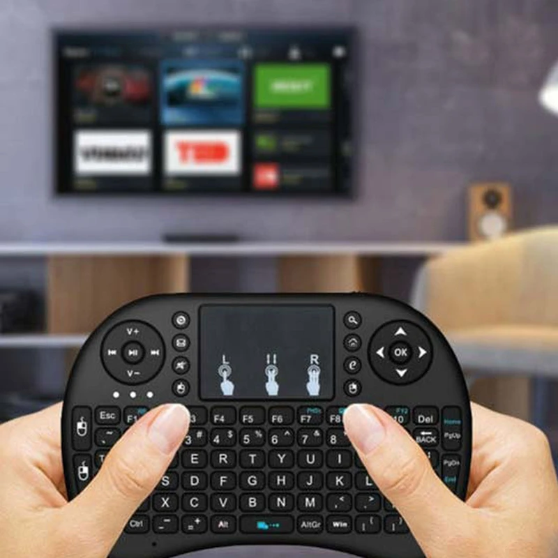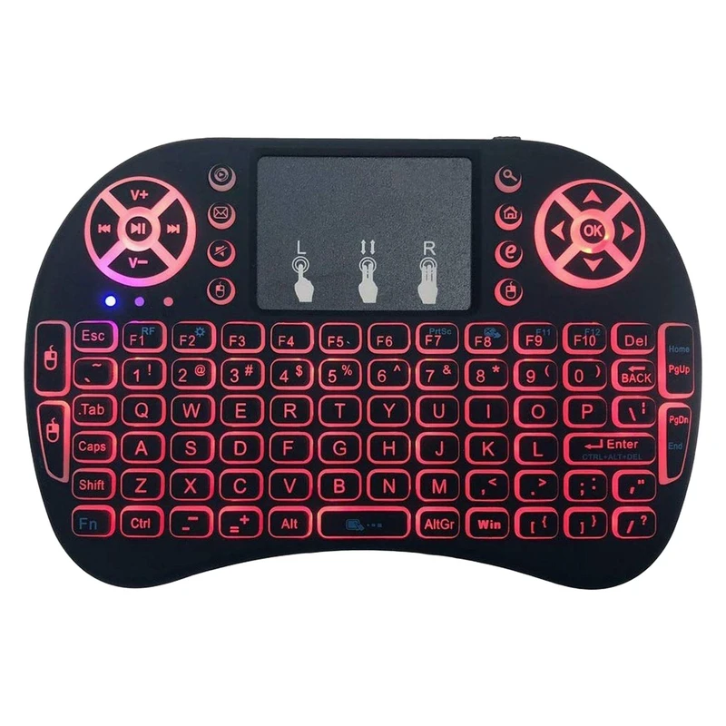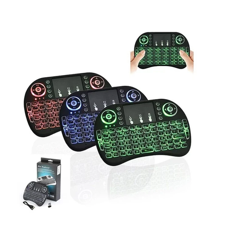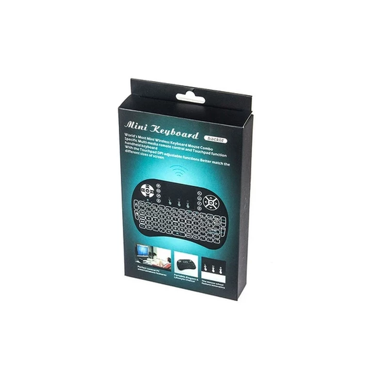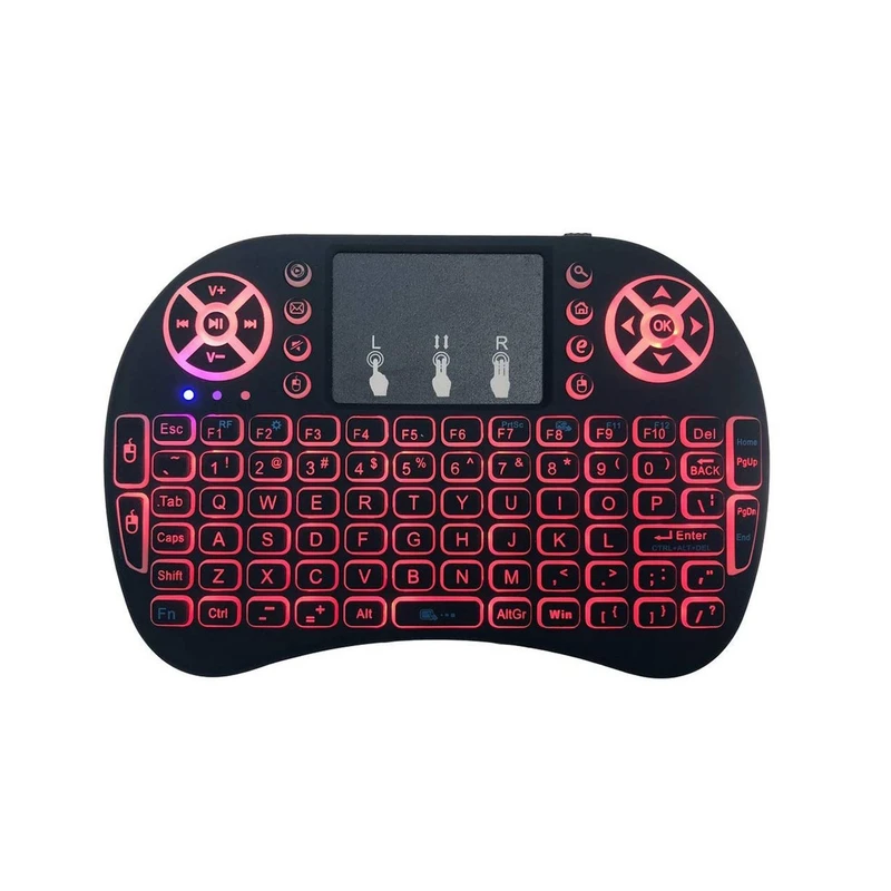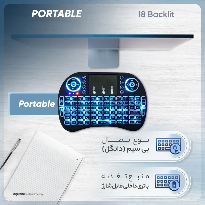 مینی کیبورد بیسیم i8 Backlit با سوییچ ممبران، Portable، کلید روشن و خاموش، نمایشگر میزان باتری صفحه کلید، مجهز به تاچ پد