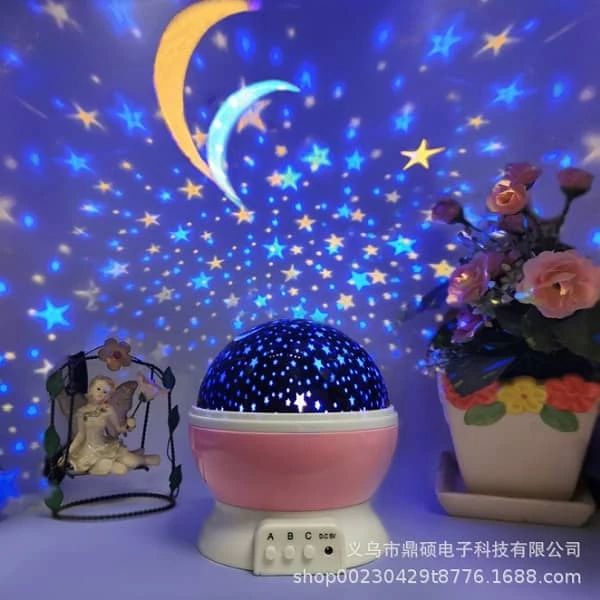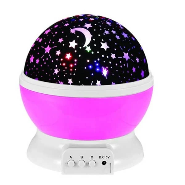 این چراغ خواب جذاب و قابل چرخیدن به صورت 360درجه ای ، برای فضای اتاق شما با ایجاد تصاویر خارق العاده از ماه و ستاره یک کهکشان واقعی ایجاد میکند. با زدن کلید های روی آن رنگ آن تغییر کرده یا رنگ ها را باهم می توانید ترکیب کنید و همچنین با کلیدهای روی این چراغ می توانید حالت چرخشی یا حالت ثابت برای آن انتخاب کنید. اگر درپوش سفید چراغ روی آن باشد تصاویر روی دیوارهای پخش نمیشوند ، ولی اگر درپوش سفید را بردارید و تلق مشکی زیر آن را خارج کرده و روی چراغ قرار دهید تصاویر به طرز باور نکردنی و قابل توجهی روی تمام دیوارها و سقف پخش می شوند. این چراغ یک هدیه ی جذاب برای کودک شما یا حتی قابل استفاده در جشن ها و مهمانی های شما می باشد. این چراغ خواب هم با کابل usb داخل جعبه کار میکند و هم با باتری