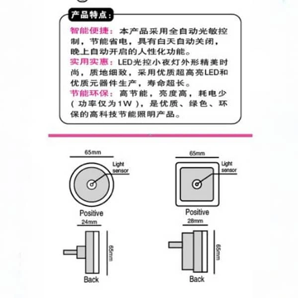 این چراغ خواب جذاب و زیبا توسط دوشاخه متصل به آن داخل پریز قرار میگیرد و به محض تاریک شدن محیط با توجه به سنسور حساس به نور داخل چراغ به صورت خودکار روشن میشود و نوری بسیار ملایم و جذاب به محیط پیرامون خود القا می کند و با روشن شدن محیط مجدد به صورت خودکار خاموش میشود و توجه کنید که نیازی به خارج کردن چراغ از پریز در طول روز نمی باشد. ابعاد این چراغ 6.5×6.5×6.5 می باشد و توان آن 1 وات است و حداقل انرژی را مصرف می کندو می توان این چراغ فوق العاده را در تمام محیط های منزل و همچنین محل کار استفاده نمایید.