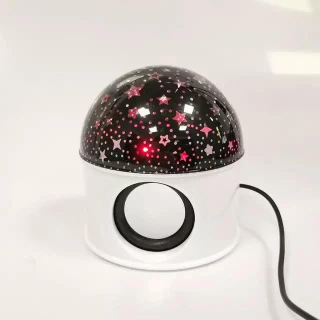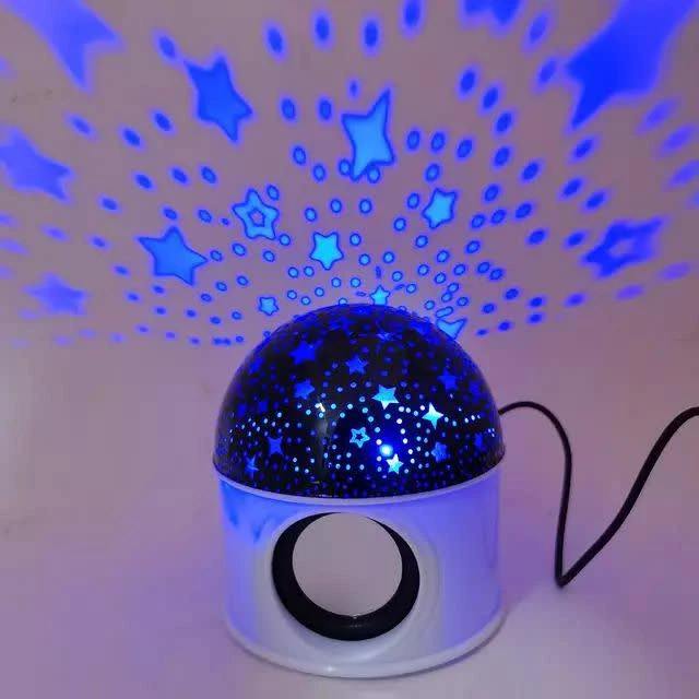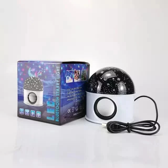 چراغ خواب کهکشانی ، اسپیکر دار طرح ماه و ستاره با جنس بدنه از پلاستیک فشرده و تلق شیشه ایی مشکی طرح ستاره و ماه در قسمت بالای آن میباشد این چراغ خواب دارای موتور گردان داخلی جهت انعکاس تصاویر ماه و ستاره بر روی سقف و دیوار اتاق خواب بوده که زیبایی فوق العاده ایی به اتاق خواب شما میدهد بلوتوث این دستگاه سازگار با تمامی گوشی های موبایل و تبلت و غیره میباشد که برد آن استاندارد و 10 متر است و میتوانید هنگام خواب نیز از طریق اسپیکر این چراغ خواب موسیقی دلخواه خود را گوش دهید.منبع تغذیه این رقص نور USB می باشد که میتوان با کلگی شارژر موبایل و یا تبلت و یا پاوربانک شما روشن شود و در داخل جعبه دارای یک کابل میکرو یو اس بی است و مصرف انرژی چراغ خواب فوق العاده کم به دلیل ال ای دی های نسل جدید میباشد و در قسمت پشت این دستگاه یک سوکت میکرو یو اس بی جهت اتصال کابل و یک کلید خاموش و روشن وجود دارد .