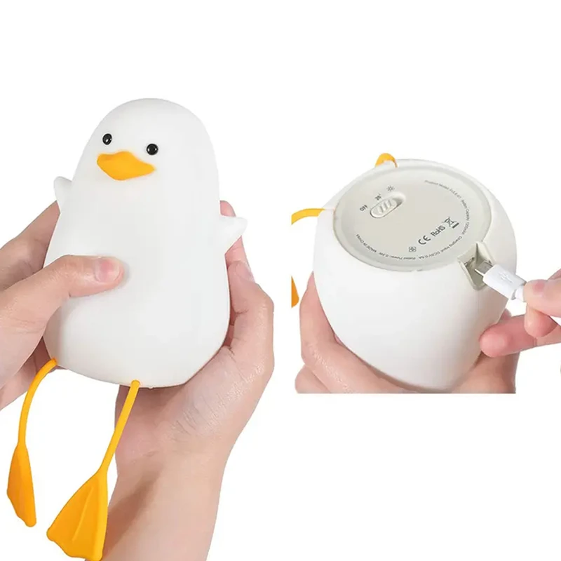چراغ خواب کودک مدل اردک وسیله ای زیبا و کاربردی و البته ضروری برای اتاق خواب کودک شماست. جنس این چراغ خواب سیلیکونی بوده و از هرگونه آسیب رسانی به کودک شما جلوگیری می کند. این چراغ خواب با طراحی جذابی به شکل اردک دارای حالت نوری شب خواب است. چراغ خواب کودک یک ویژگی جذاب دارد که می توانید با ضربه زدن به سطح سیلیکونی چراغ خواب آن را روشن و خاموش کنید. این چراغ خواب کودک قابلیت شارژ مجدد را داراست و از طریق کابل Type-C (تایپ سی) موجود در جعبه می توانید آن را شارژ نمایید.از این چراغ خواب میتوانید به عنوان هولدر موبایل نیز استفاده نمایید.