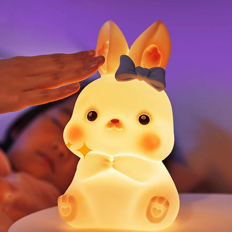 چراغ خواب اتاق کودک طرح عروسکی، از جنس سیلیکون نرم ولطیف و با کیفیت میباشد، محصولی زیبا و جذاب که با زدن ضربه به محصول میتوان درجه ی روشنایی آن را تنظیم کرد هر ضربه ۳۰ درصد روشنایی را بیشتر میکند. دارای سه سطح نوری میباشد. پخش نور LED به رنگ مهتابی. این محصول را باطری لیتیومی قابل شارژ با ظرفیت 1200میلی آمپر پشتیبانی میکند. زمان لازم برای شارژ کامل محصول ۲ ساعت میباشد و زمان لازم برای استفاده ی مداوم با سطح نوری کم ۶ ساعت می باشد. در جعبه محصول یک عدد شارژرکابل با کیفیت type-c موجود است. این محصول دارای تایمر ۳۰دقیقه ای می باشد.
