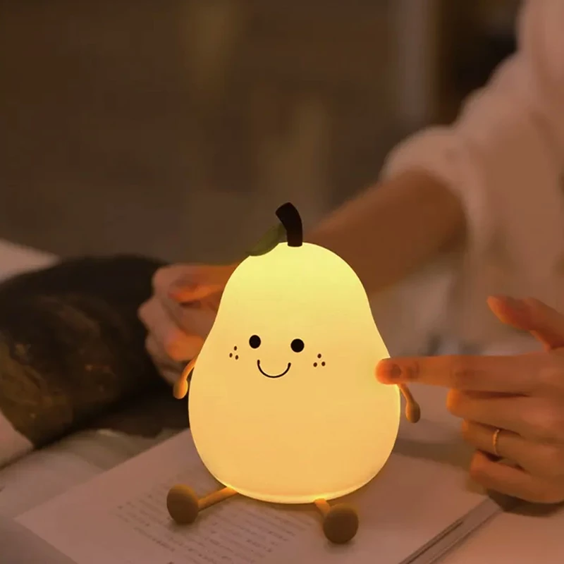 چراغ خواب کودک مدل گلابی کد L40 وسیله ای زیبا و کاربردی و البته ضروری برای اتاق خواب کودک شماست. جنس این چراغ خواب سیلیکونی بوده و از هرگونه آسیب رسانی به کودک شما جلوگیری می کند. این چراغ خواب با طراحی جذابی به شکل گلابی دارای دو حالت نوری شب خواب و RGB است که با تغییر و انتخاب هریک از مود های این چراغ می توانید از نورهای جذاب آن لذت ببرید. حالت RGB این چراغ خواب کودک یک ویژگی جذاب دارد که می توانید با ضربه زدن به سطح سیلیکونی چراغ خواب رنگ آن را تغییر دهید. این چراغ خواب کودک قابلیت شارژ مجدد را داراست و از طریق کابل Type-C (تایپ سی) موجود در جعبه می توانید آن را شارژ نمایید.