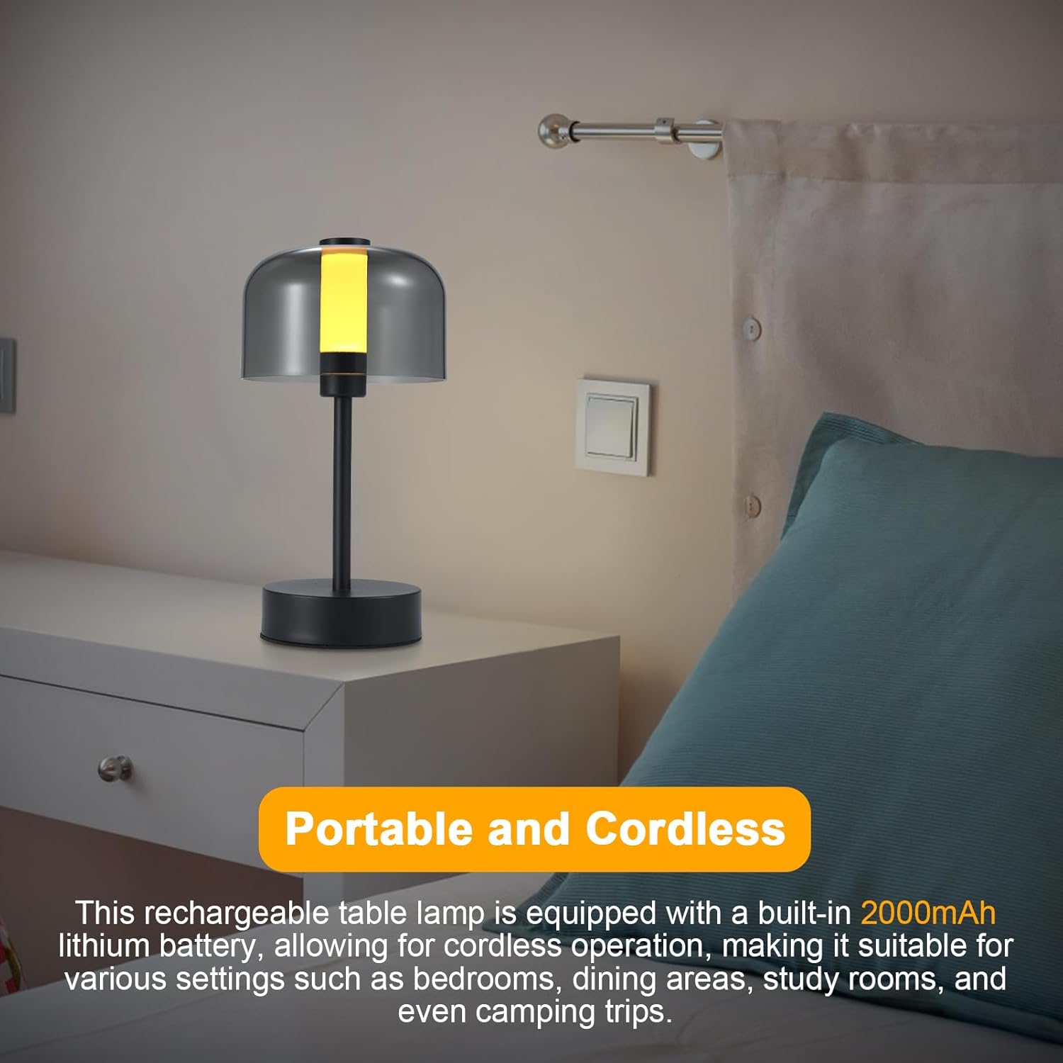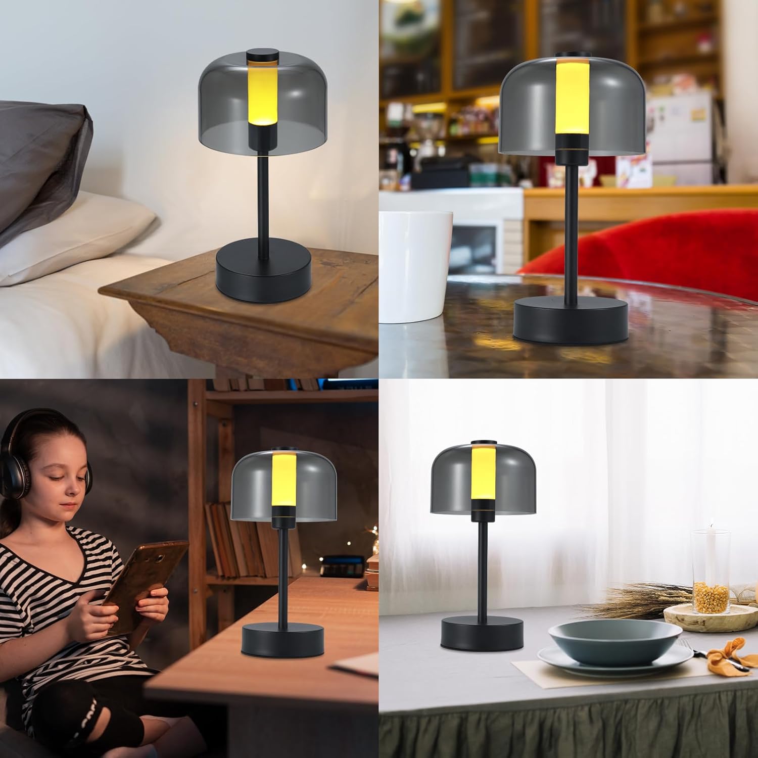 این چراغ LED بیسیم دارای بدنهای از جنس آلومینیوم مشکی مات، آباژور شفاف و پایه ضدلغزش است. طراحی ساده و لوکس آن باعث شده تا بهراحتی در فضاهای مختلف قابل استفاده باشد: