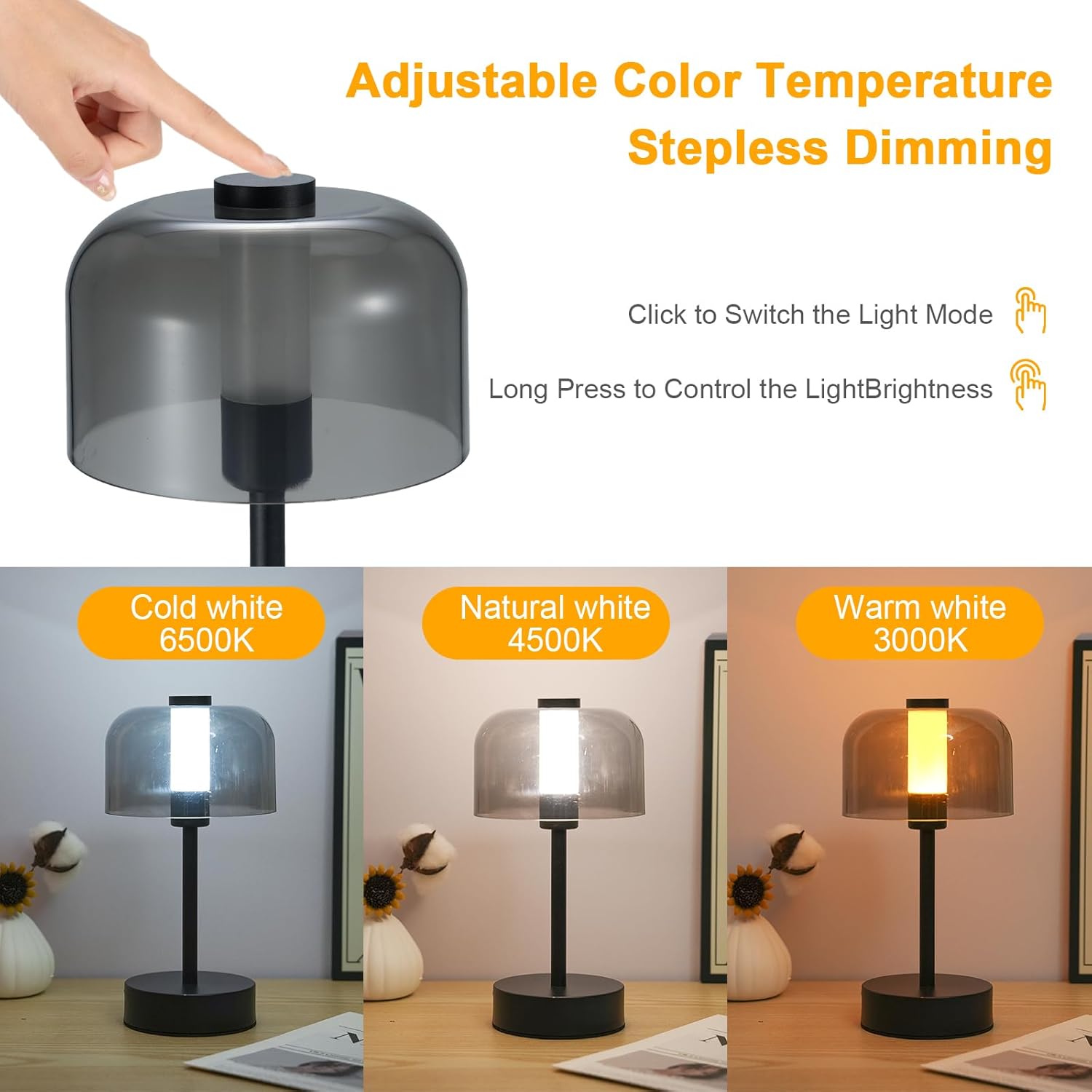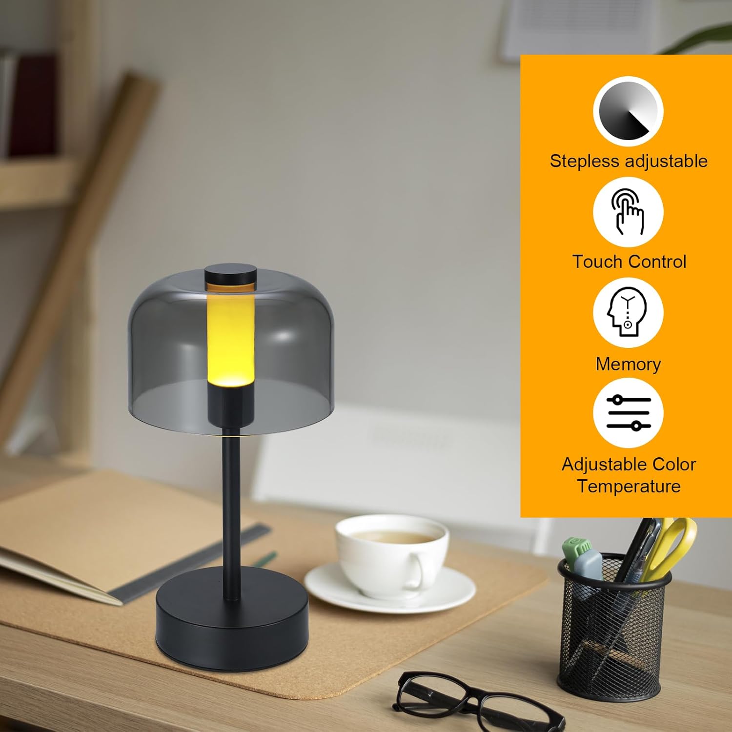 چراغ رومیزی LED بیسیم مدل مینیمالیستی | طراحی مدرن، نور قابل تنظیم و کنترل لمسی