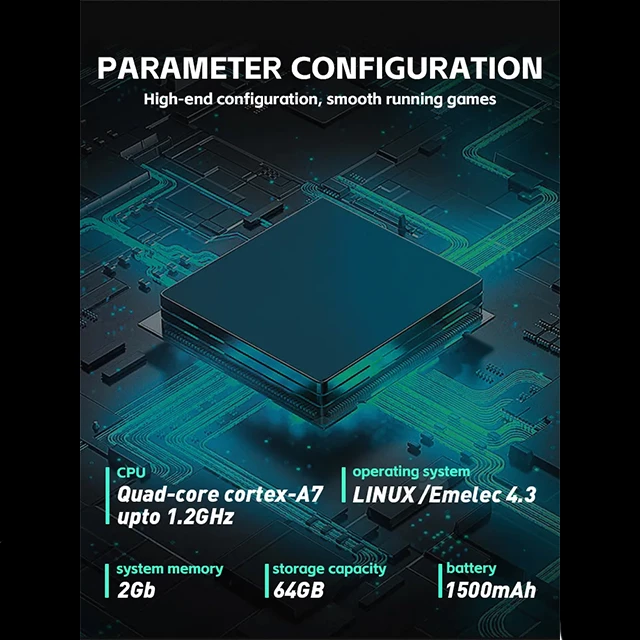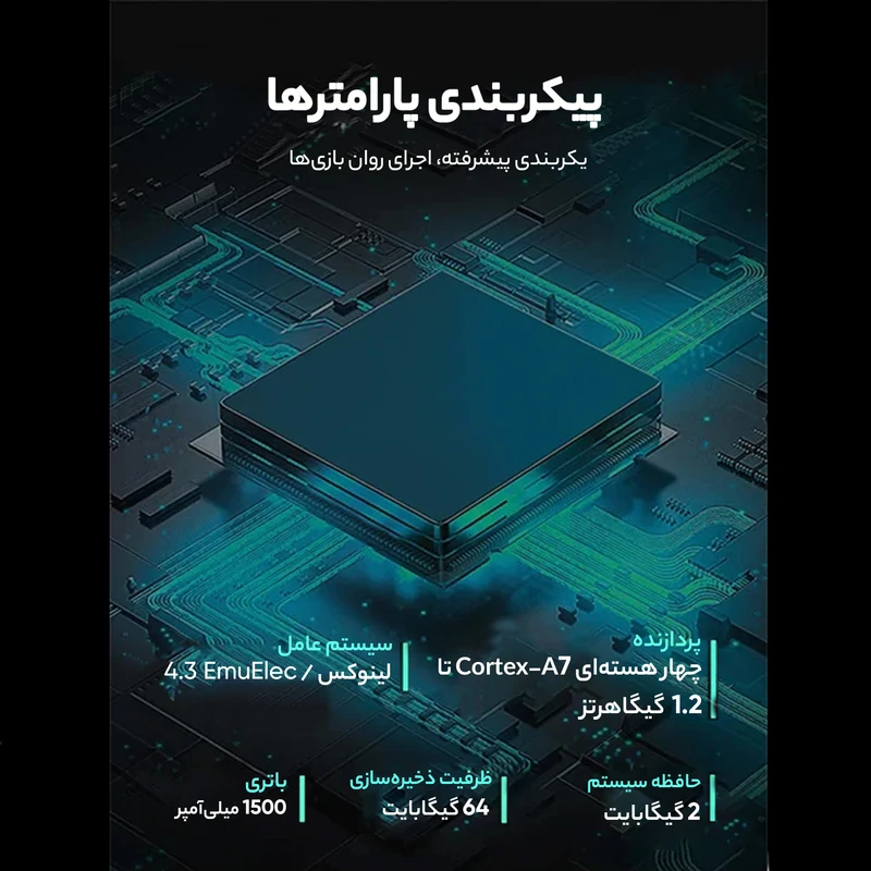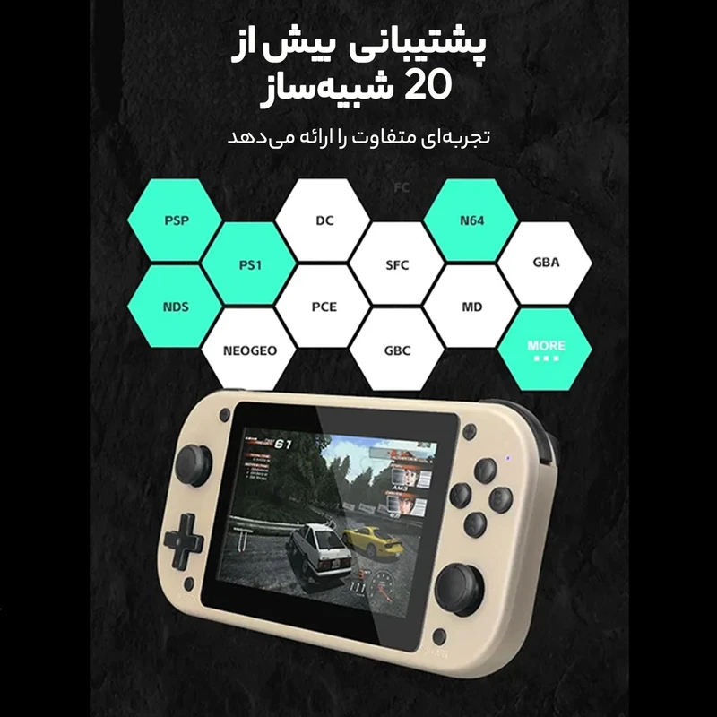 امکانات و قابلیتها: دارای ۲۰ هزار بازی جک ۳.۵ میلیمتری نمایشگر ۴.۳ اینچ ظرفیت رم : ۶۴ گیگابایت ظرفیت باطری : ۲۰۰۰MAH قابلیت اجرای بازی های PS۱ , PSP , NDS , DC , PCE , NEOGEO ,PCE ,DC,,SFC,GBC,N۶۴,MD,GBA,AND …